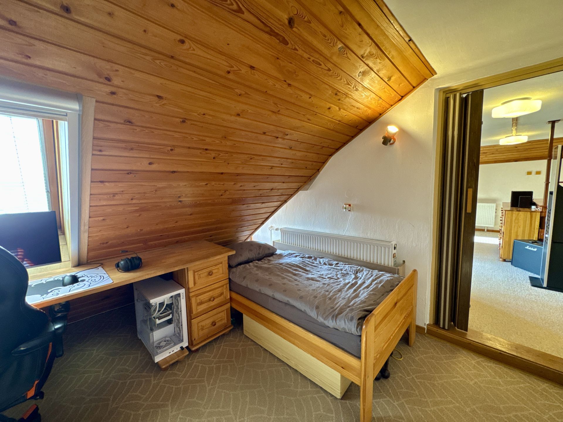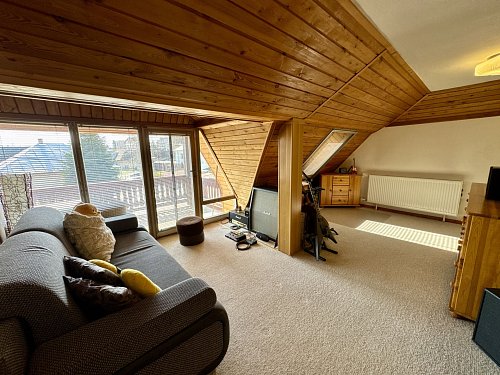 Podkrovie: Otvorený presvetlený priestor s hliníkovými dverami na terasu. Príprava (voda/odpad) na ďalšiu kúpeľňu – možnosť vytvoriť samostatnú "bytovú jednotku" napríklad pre Vášho tinedžera..