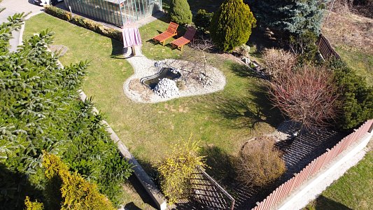 Pozemok: Štedrých 1376 m² s krásnym trávnikom, skleníkom a priestorom na relax.