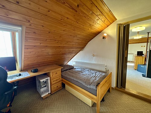 Kuchyňa, kúpeľňa a jedna izba (aktuálne využívaná pre psov). Pod budovou sa nachádza praktická pivnica.