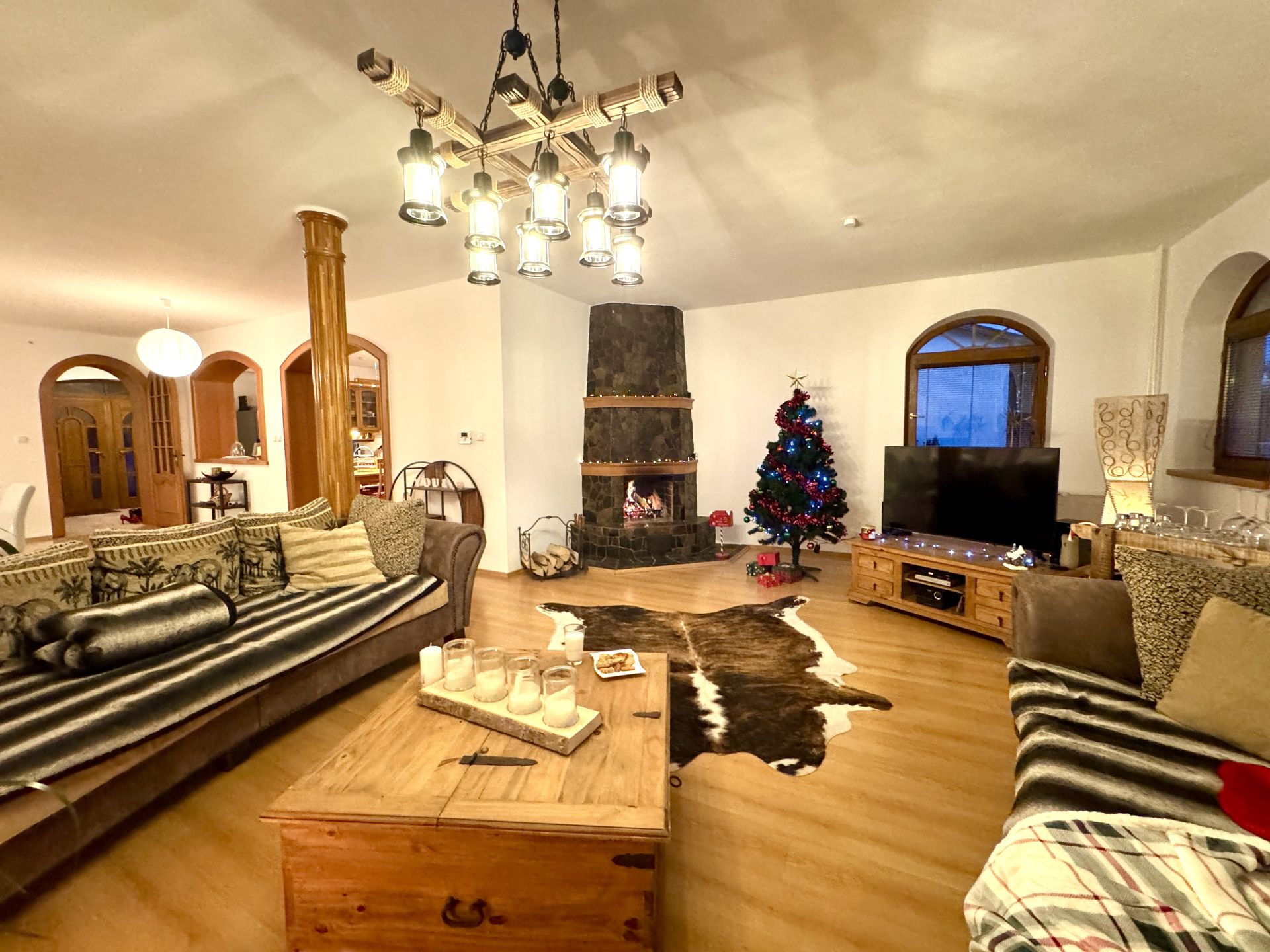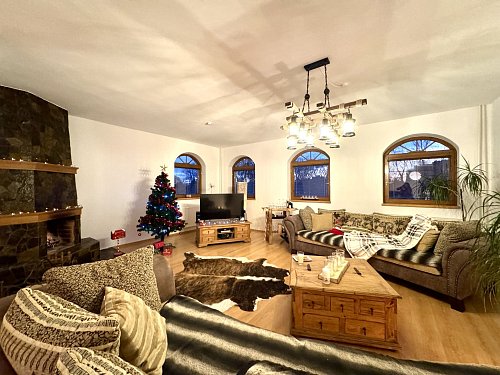 • Priestranná obývacia izba s otvoreným krbom a jedálenskou časťou