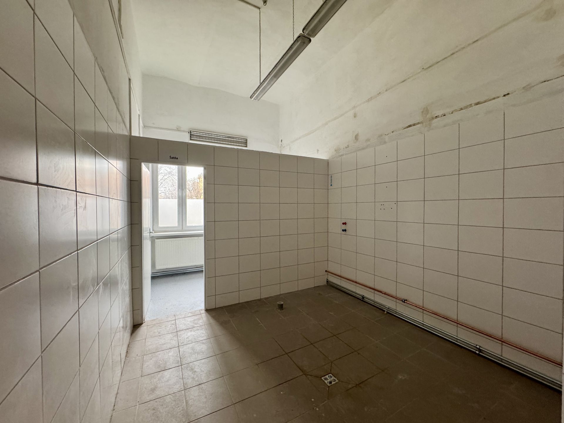 Čiastočne podpivničená tehlová budova s vysokými stropmi a hrubými múrmi
