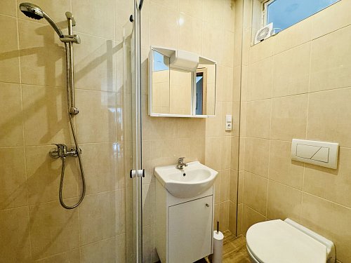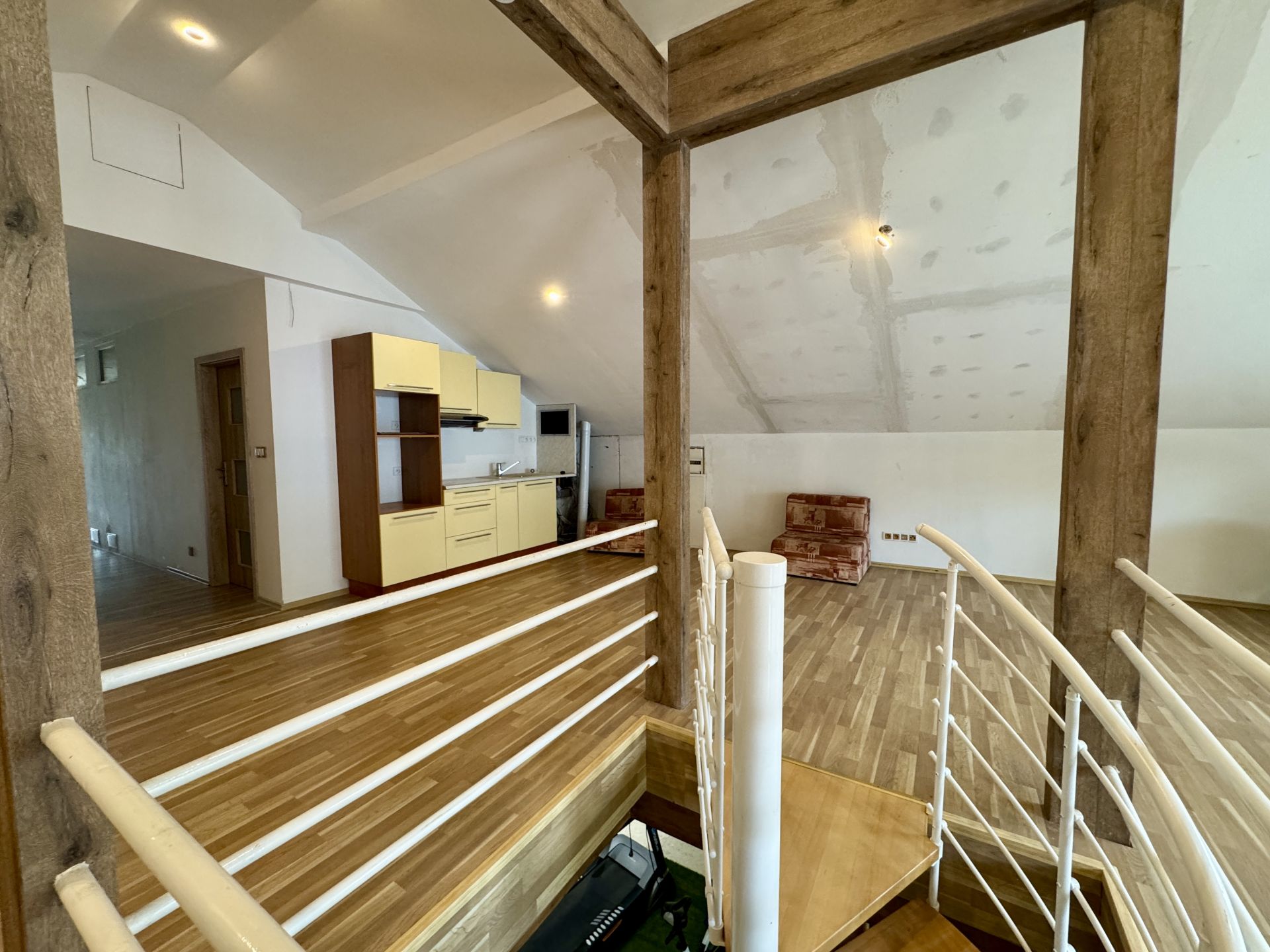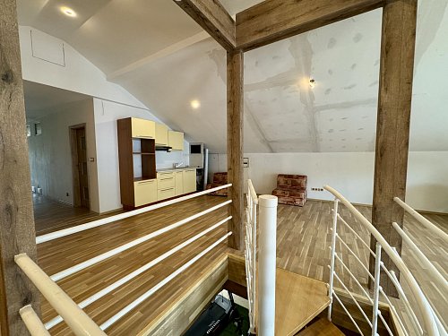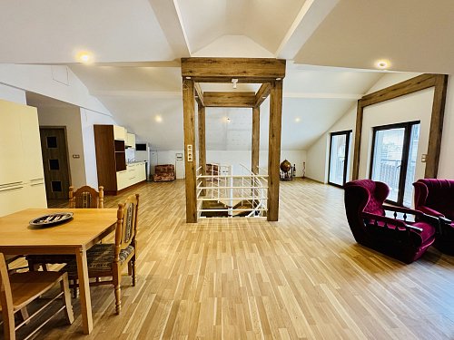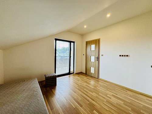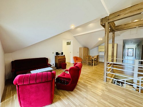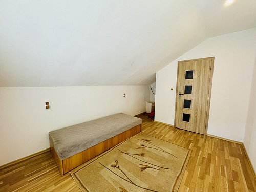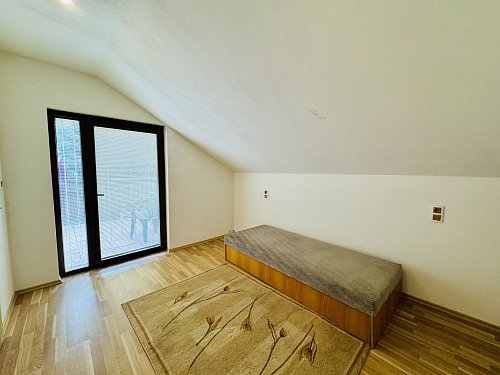 Poschodie (so samostatným vstupom): veľká obývacia miestnosť s kuchyňou, 8 samostatných izieb s vlastným sociálnym zariadením – ideálne na prevádzku penziónu, ubytovania či firemného sídla.