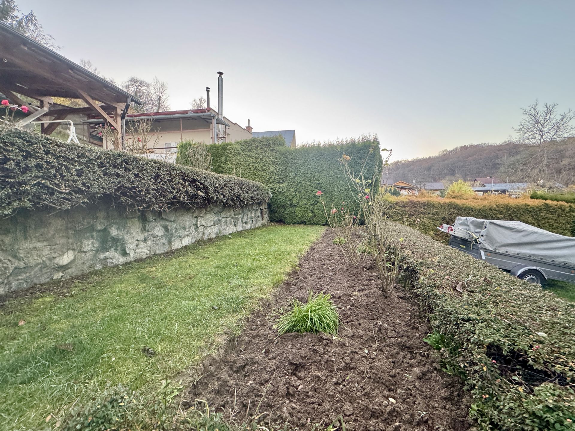 Za domom - kaskadový pozemok na ktorom je letná kuchynka.