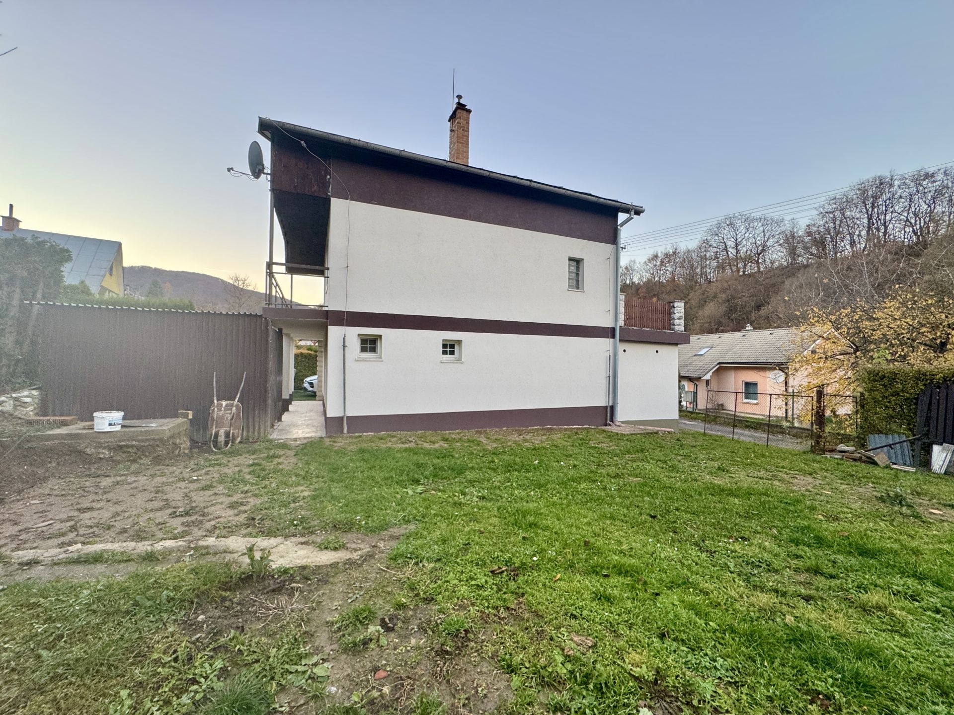Na predaj priestranná chata o rozmere cca 7 × 8 m, postavená z tehly a kvádra, so zateplením, betónovými stropmi a plechovou strechou. Užitková plocha cca 160 m2.